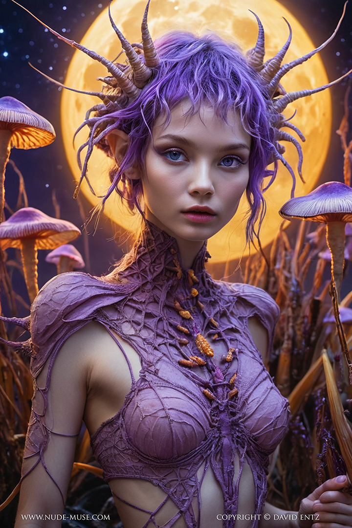 Angelina is a 205 year old faery located on another world. Cordyceps are a peculiar sort of mushroom. One variety can take over the brain of a host ant and make it walk like a zombie to a high ip spot, make the ant bit down hard onto a small branch, and then it dies allowing the cordyceps to fruit and release it spores to infect the next ant. These Faery folk, live a symbiotic existence with these alien coryceps mushrooms. This relationship allows the fae to travel to other worlds and dimensions, using the Mycelium, without needing technology, like spaceships.