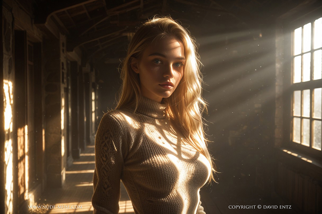 I really like the lighting setup here in this set. Trying more art type lighting. Some Ai does it well, while others not so much and need addons. Funnily enough, I almost had the chance to do a photo shoot with an actual librarian, who was very pretty indeed. However it fell through when she moved to a different state. Shame as she looked a little bit like our Ai model Claudia. Not sure what library I could have done such a photo shoot. Was looking around for private libraries and had a few leads, but I stopped looking once she moved away. Anyway, Ai brings this idea to life and I even tried doing a brief video for you to see the idea come to life a little bit more. See below
