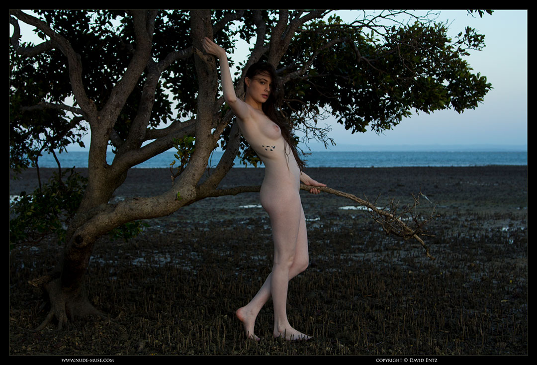 Mangroves are in fact the nursery of many aquatic life. It is the home of many creatures. Creatures which themselves are all nude too. So it is fitting that Alex blend with nature and be nude herself. Her soft pale skin is more reminiscent of nocturnal life and fitting that she should emerge as the sun sets below the horizon.