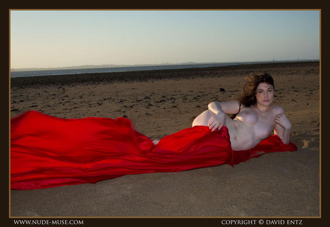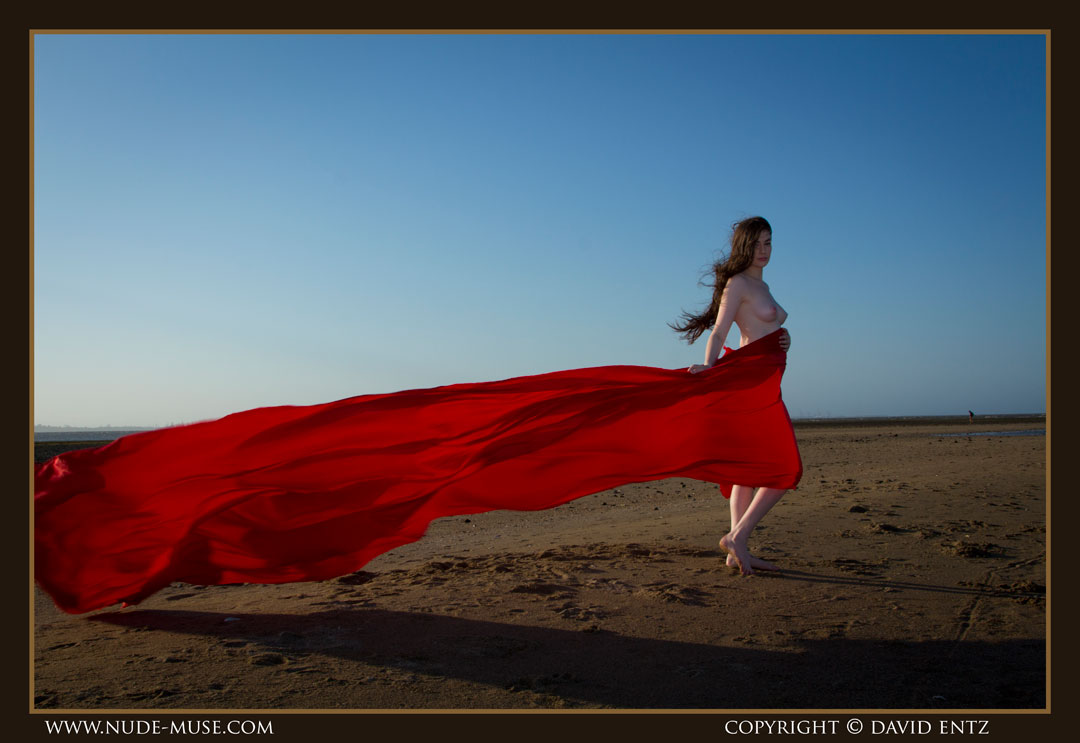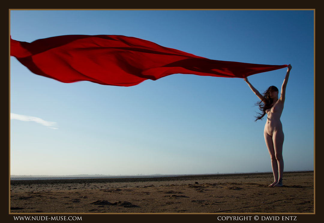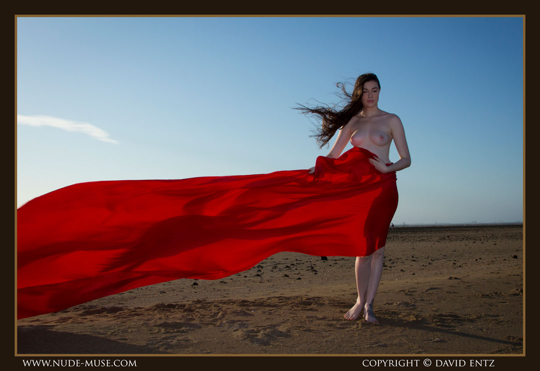 A beautiful nude woman named Alex. A sunset, and a long, long red satin sheet blowing in the wind. The ingredients for some breathtaking nude art.