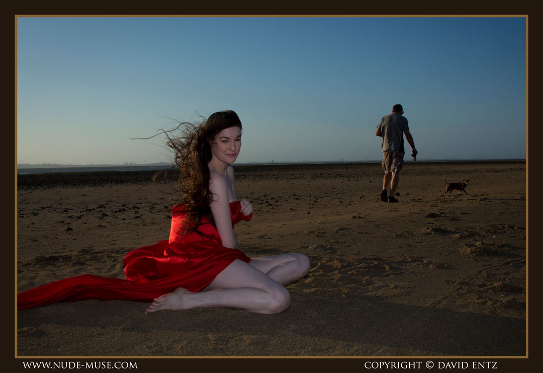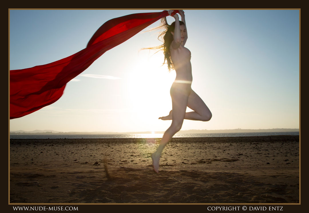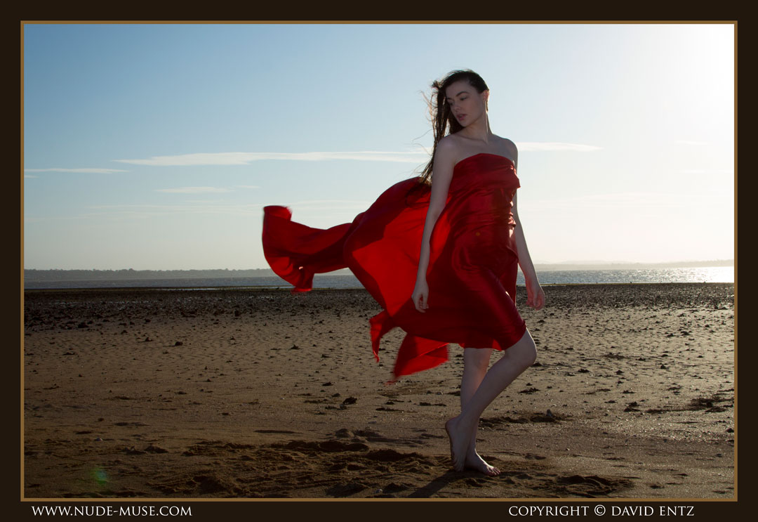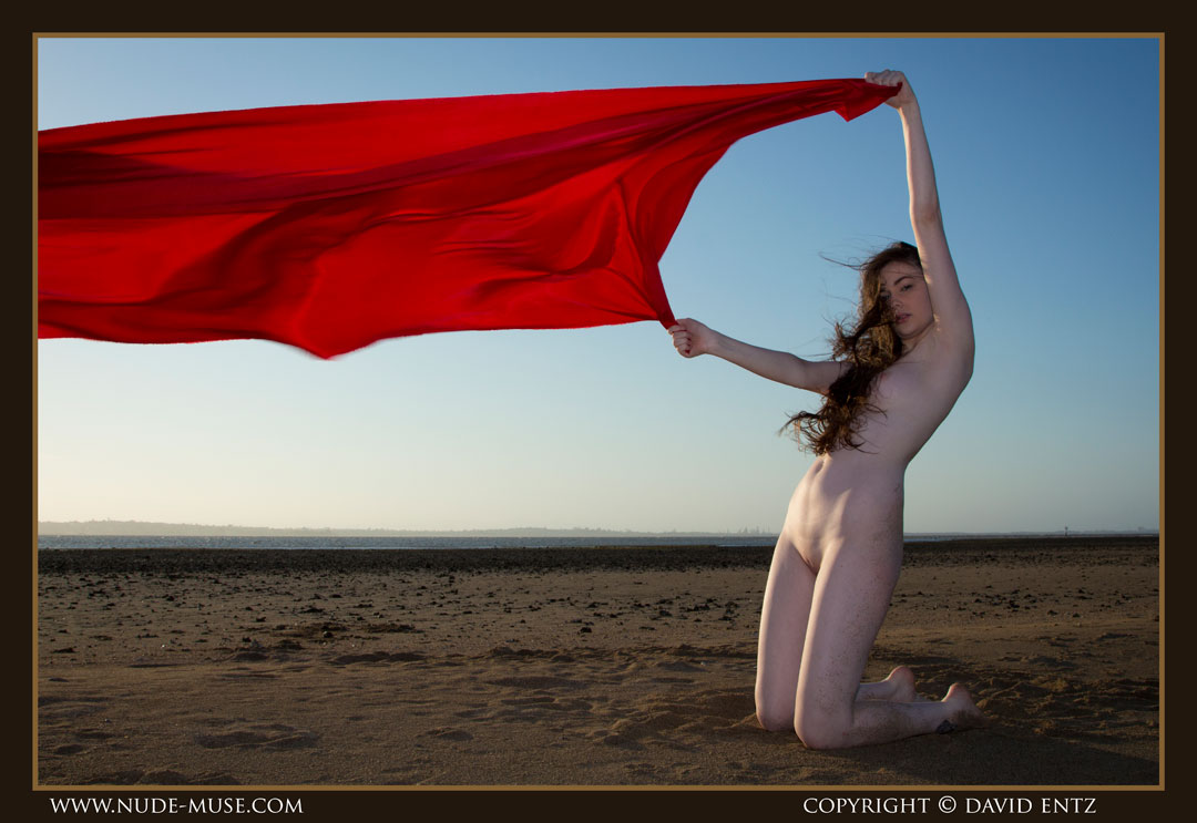 A beautiful nude woman named Alex. A sunset, and a long, long red satin sheet blowing in the wind. The ingredients for some breathtaking nude art.