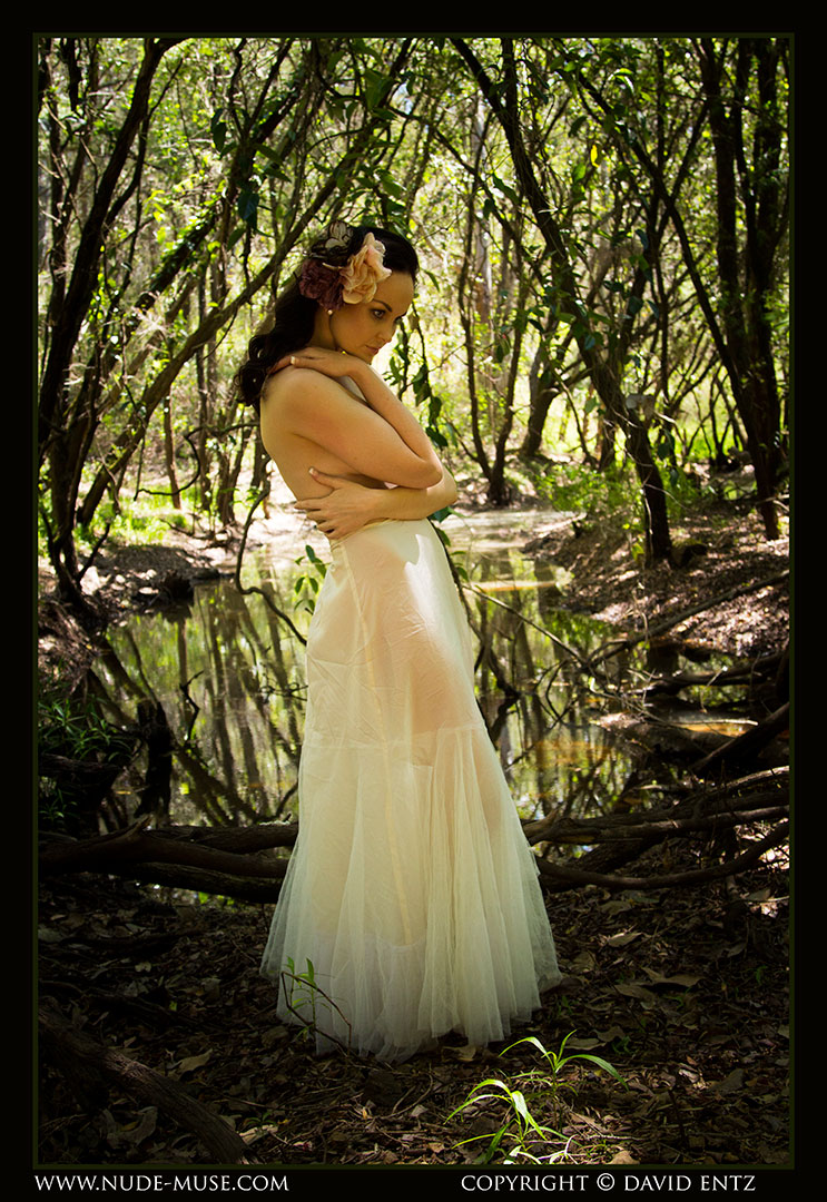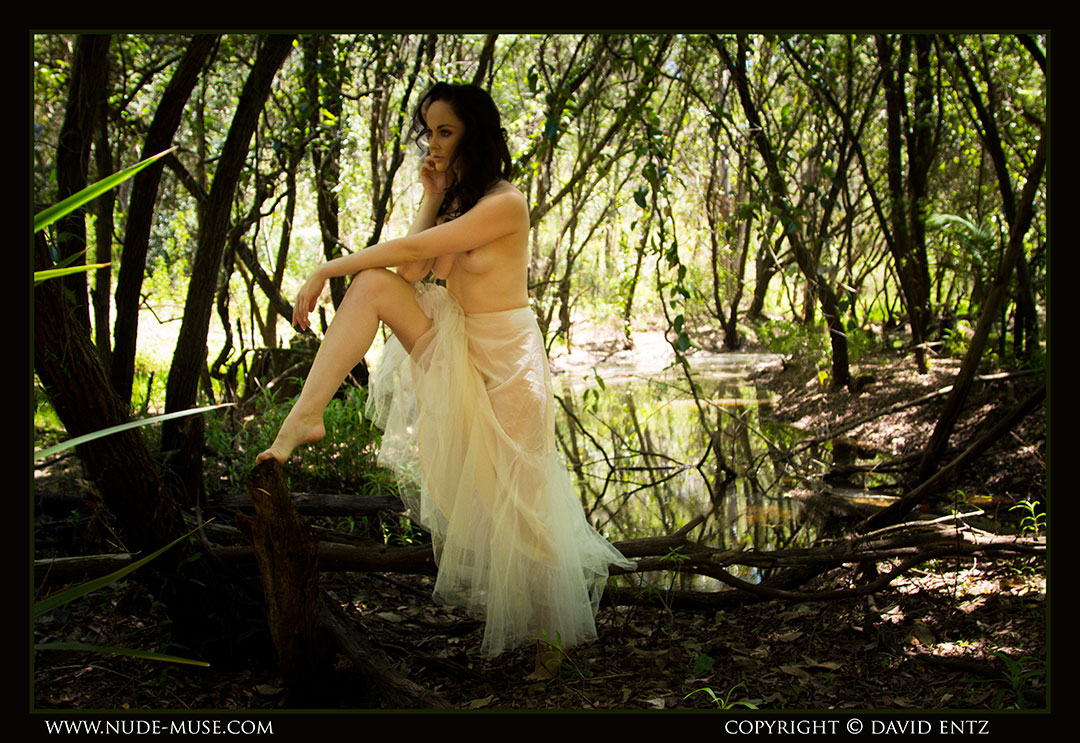 This series with Anne is called Southern Belle. There is a notion popularised in books about this. It is that romantic notion that era of whimsy that is being captured here with Anne. The perceived fragility of the nude form on such a harsh unforgiving environment as a wetland or swamp can be. The stark contrast between the two.