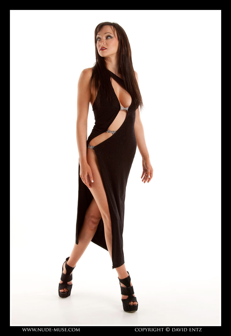 Lets take Chloe-Lee's black dress. Have a look at the last image here and you can see that the black dress is just a puddle of fabric on the ground. Not very pretty nor glamorous is it? Now take a look at the first photo and the dress looks much better. It is because Chloe-Lee makes the dress look good. It is only when she is wearing it does the dress look good. In the last photo, the dress looks bad, but Chloe-Lee still looks fantastic nude. She looks fantastic either clothed or nude. So what is underneath that? As you can see it is a very beautiful woman. Naked! Just as we all are naked under our clothes.