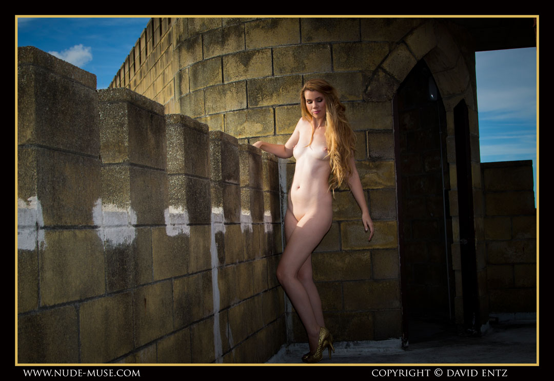 A lonely nude princess locked away in a tower all alone, waiting for someone to rescue her. At least that is the story version. We just think Dannii looks amazing nude in a big castle with the afternoon light.