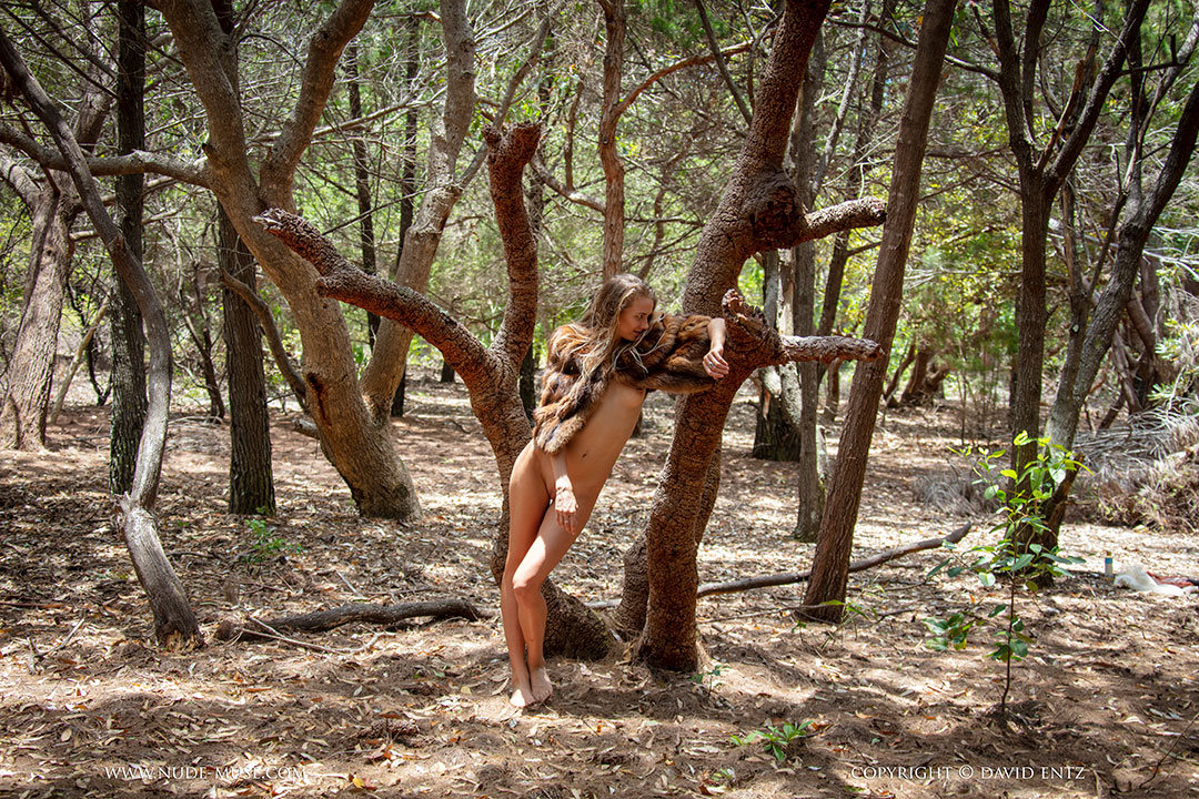 Our animal instincts are the most primal and primitive. It is what keeps us alive when danger lurks but isn't quite visible. Its a hunch or an intuition, a feeling. Its also what drives us or an urge. Elly follows her animal instinct in this forest. Nudity just accentuates that closeness to nature and our affinity to thew animal kingdom. The fur coat is the symbol of our lost fur. Not as a symbol to cover our nudity, but as a way to protect from the extreme elements that our ancestors had to ensure.