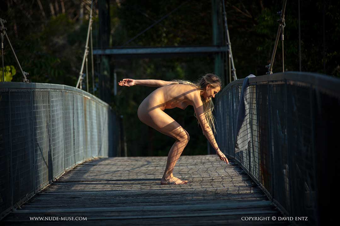 This pedestrian bridge is a great location For Elly to go nude for art. However since this is a suspension bridge it kept bouncing around for comical effect.