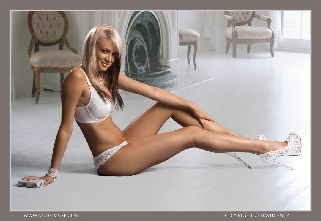 First it was Harper as red riding hood. Now we continue the fairy tale themes with Erin as the modern Cinderella. Most Cinderella images are either scrubbing the floor or running down stairs loosing a glass shoe. For this series I wanted a more modern Cinderella getting ready for the grand ball. With mobile phone in hand Erin dispenses with a grand ball dress, instead opting for the elegant nude look, with new fairy tale shoes, and diamond jewellery, what more does a girl need......other than a prince charming.