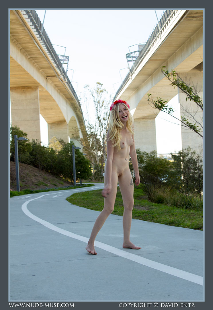 Why are some dangerous activities legal, but totally harmless ones like nudity are illegal? Here is Freya totally nude in a public place and not one person was harmed or injured by her nudity in any way. Not one. So if it makes people happy, just look at the joy on Freya’s face, at the freedom of being nude. Why deny her or anyone, that happiness? We think it is time to make clothing truly optional everywhere.