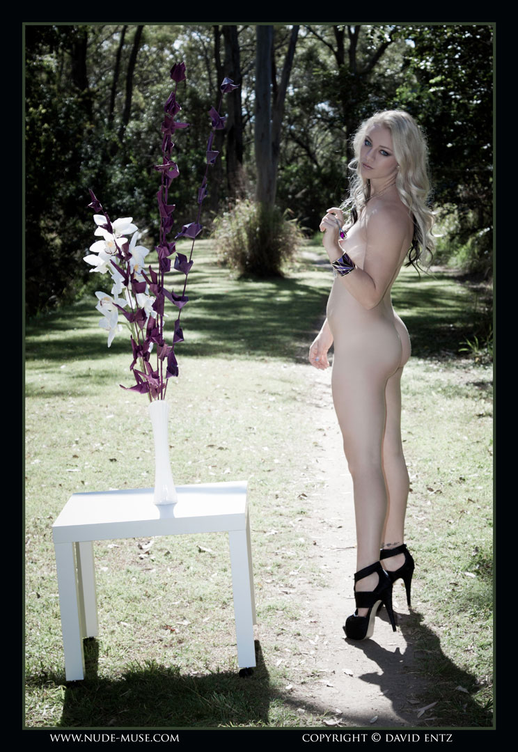The dictionary meaning of bejewelled is "decorate with or as if with jewels". Harper is not only bejewelled with jewellery but is a genuine jewel herself. This series introduces the idea that living a nude lifestyle, does not mean that you have to be totally unadorned. That you can still be nude, but look stylish and elegant.