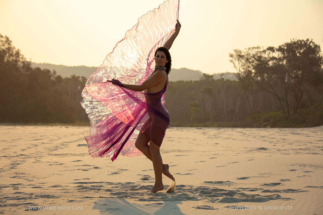 Shining wings flap in the golden light of the afternoon sun. Attached to those wings is the stunning form of Kathleen, as she dances jumps and floats in the light of the setting sun. She looks like a beautiful butterfly enjoying the last light of the day, making the most of it before the shroud darkness of night envelopes the landscape.