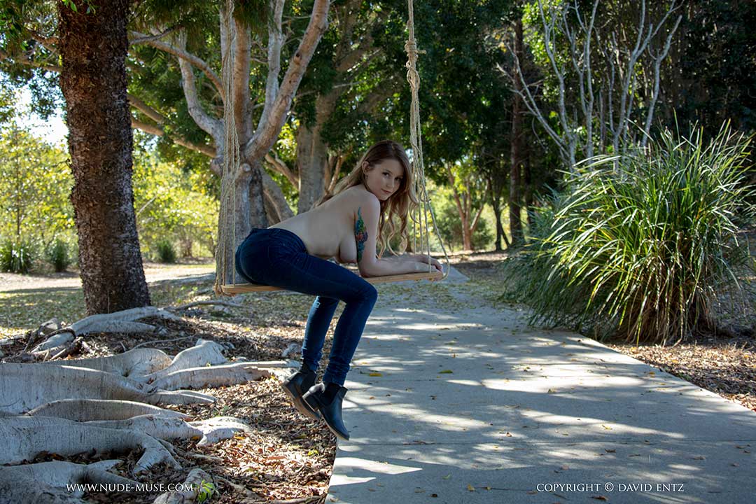 The idea to swing nude in the park was all Misty-Day’s. When we found this lovely spot we knew we had to do the photo shoot here, despite it being on a popular walkway
