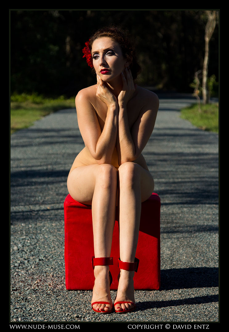 This set of images with Wendy is simply for the purpose of being aesthetically pleasing. The colour red is a great contrast to all the green. The road leads the eye back to Wendy and Wendy just looks stunning