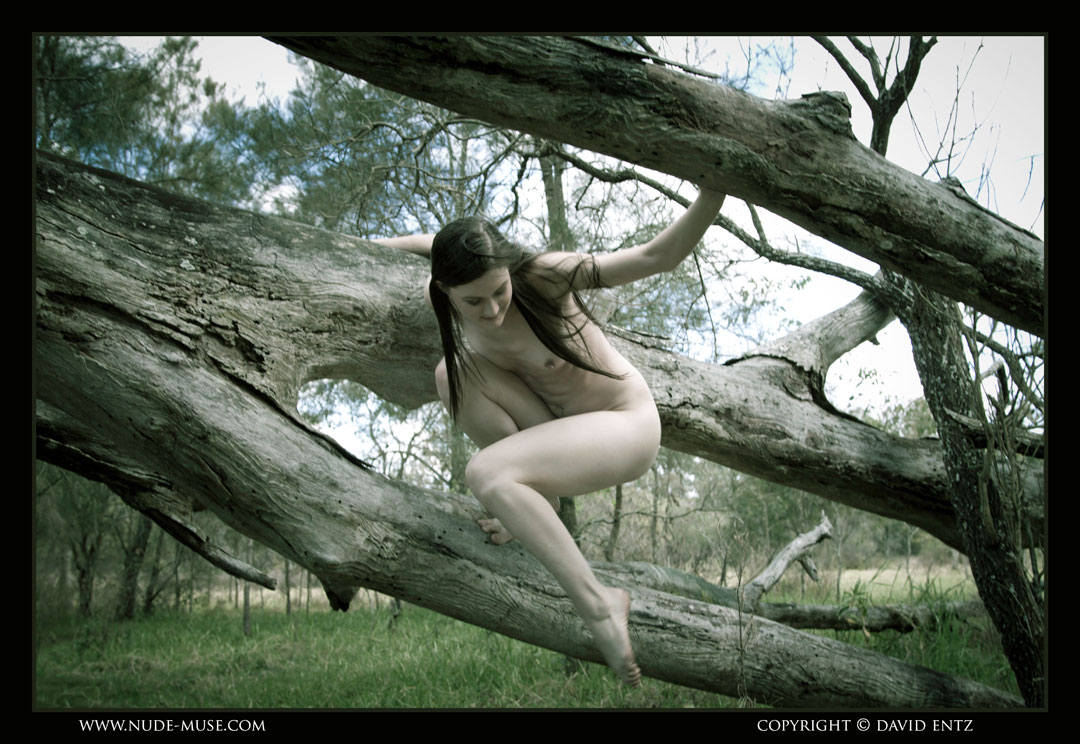 A tree falls in the forest, but does it make a sound if no one is around to hear it? The tree is Gnarled, twisted and broken, but it still holds a portion of it's former majesty. Angela is a small fragile creature, nude and lost in a wilderness. It is that contrast and the symbiotic relationship between life and death, shelter and home.